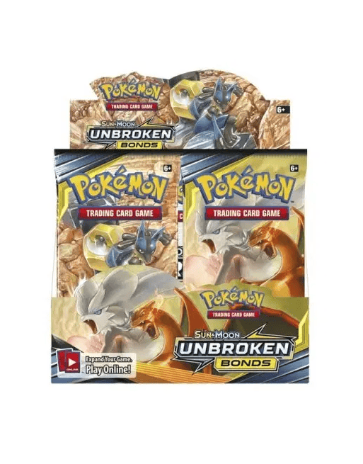 Forge powerful alliances with the Pokémon TCG: Sun & Moon Unbroken Bonds Booster Box! This factory-sealed display box contains 36 booster packs, each with 10 cards, giving you a total of 360 cards to expand your collection and enhance your decks. Dive into the thrilling world of tag team Pokémon-GX, where dynamic duos like Reshiram & Charizard-GX and Lucario & Melmetal-GX unite their strengths to create devastating combos.